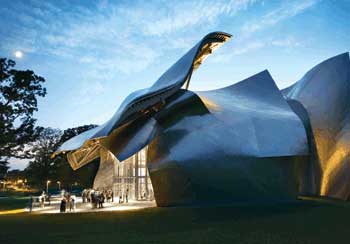 Shawn – I had never been to Bard College before last Sunday. Nor had I ever seen the Frank Gehry designed Richard B Fisher Center for Performing Arts there. It looks like a giant cybernetic insect vulva. And I mean that in the best possible way as it added to the experience greatly and strangely felt very apt. A line of tiny people, leaving the sunlight and entering the womb of some gigantic metallic prehistoric HR Giger nightmare half submerged in the earth to view its unborn and developing fetus.